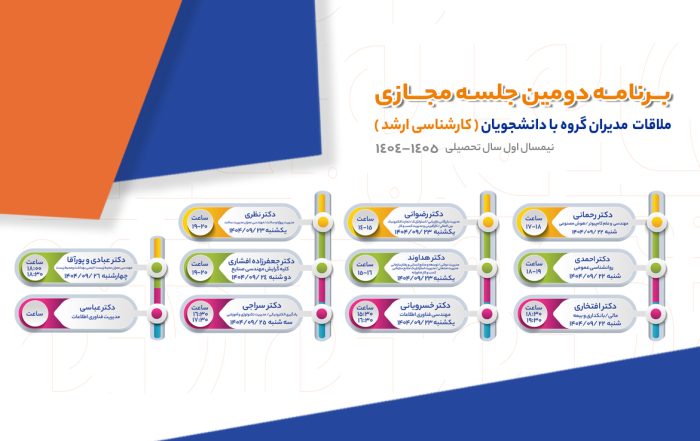 برنامه دومین جلسه مجازی ملاقات مدیران گروه با دانشجویان کارشناسی ارشد در ترم جاری اعلام شد
