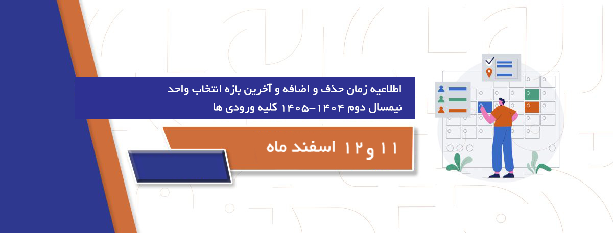 بازه حذف و اضافه و آخرین بازه انتخاب واحد : 11 الی 12 اسفند ماه