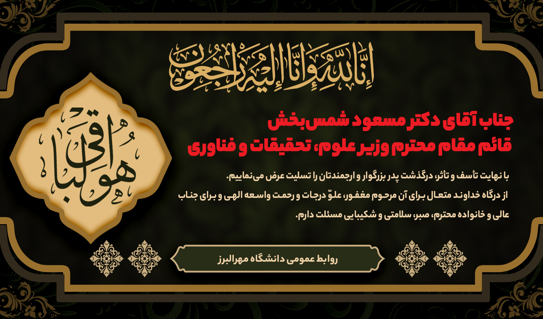 - آقای دکتر مهرشاد خسرویانی | یکشنبه ۱۴۰۴/۰۱/۳۱ ساعت ۱۵:۳۰ الی ۱۴:۳۰
